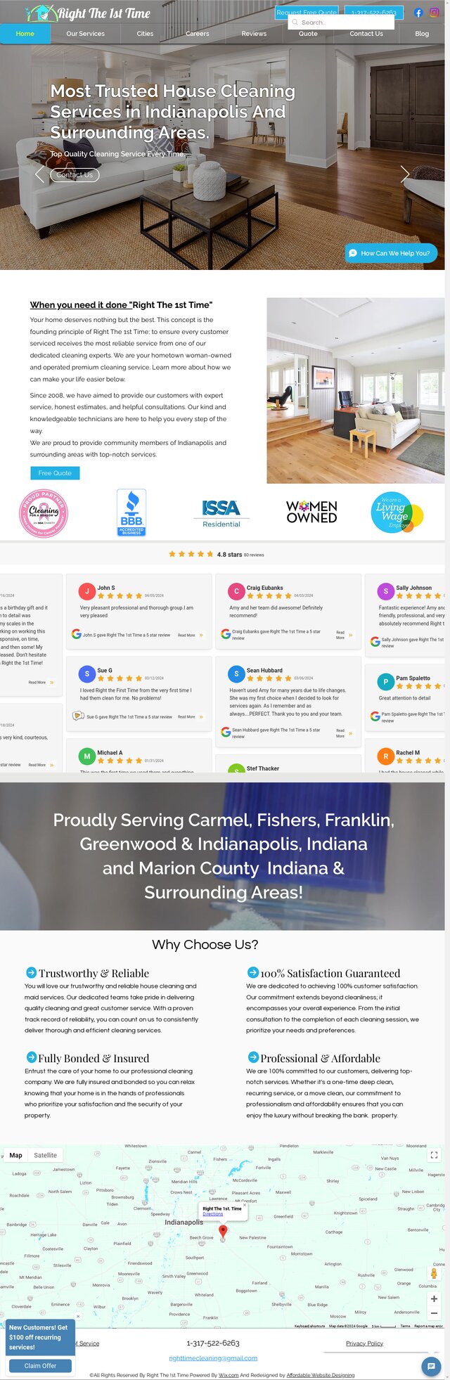 Since 2008, we have aimed to provide Residential & Commercial Cleaning to our customers with expert service, honest estimates, and helpful consultations. Our kind and knowledgeable technicians are here to help you every step of the way. We are proud to provide community members of Indianapolis and surrounding areas with top-notch services.https://www.rightthe1sttime.com/